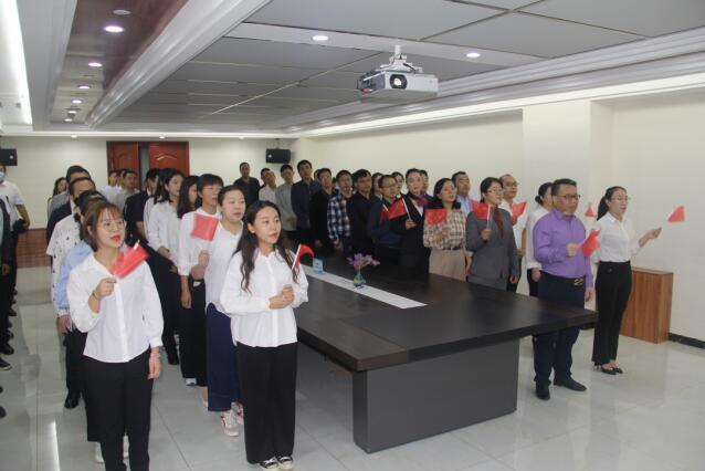 “五星紅旗迎風飄揚,勝利歌聲多么嘹亮……”伴著雄壯嘹亮的歌聲,盛淼集團在9月30日上午舉行了“五星紅旗飄起來”主題活動,集團公司趙楠副董事長主持,公司全體員工參加活動。