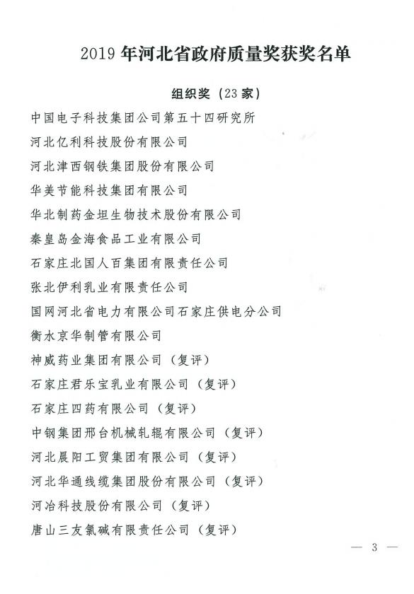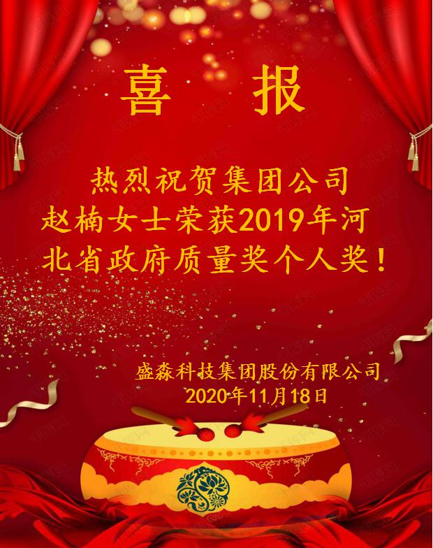 日前,河北省政府發(fā)文通報(bào)了2019年省政府質(zhì)量獎(jiǎng)獲獎(jiǎng)企業(yè)和個(gè)人名單,我集團(tuán)公司趙楠女士榮獲河北省政府質(zhì)量獎(jiǎng)個(gè)人獎(jiǎng)。
