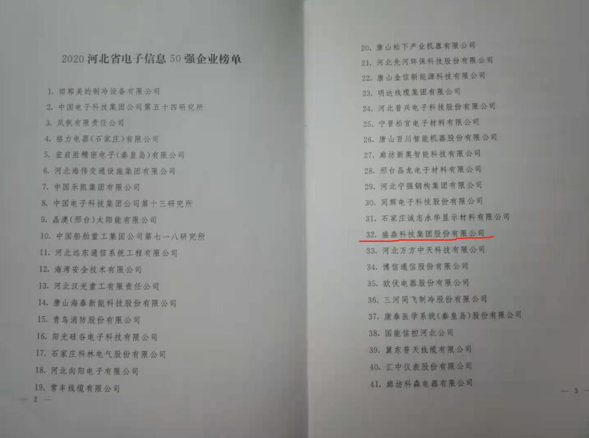 熱烈祝賀盛淼科技集團榮登河北省電子信息產業五十強榜單